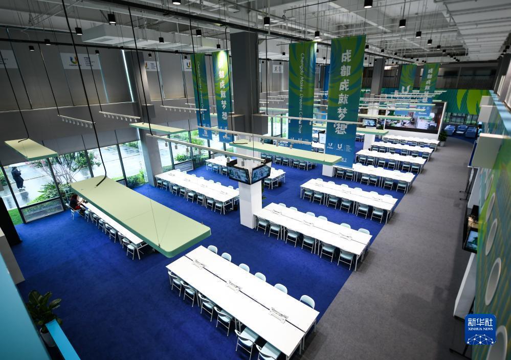 这是7月13日拍摄的成都大运会主媒体中心的媒体工作间。
