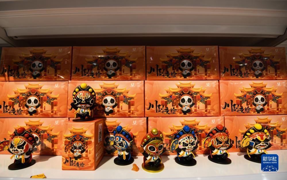 这是7月13日拍摄的成都大运会主媒体中心大运会官方特许商品零售店展出的“蓉宝”川剧变脸造型玩偶。