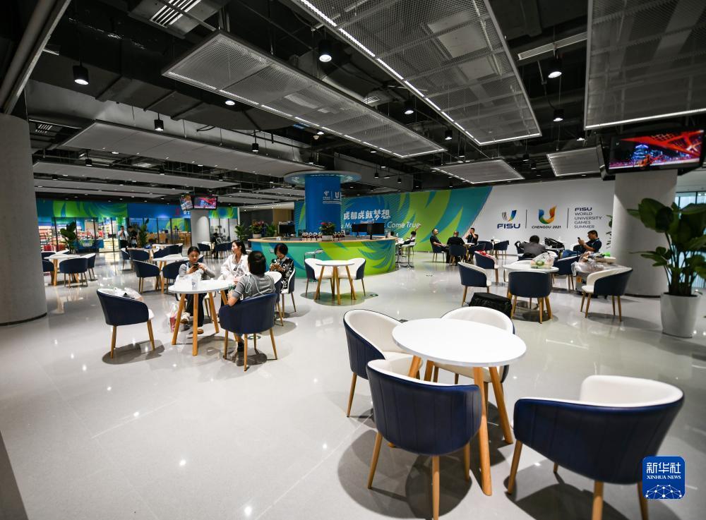 这是7月13日拍摄的成都大运会主媒体中心的会客厅。