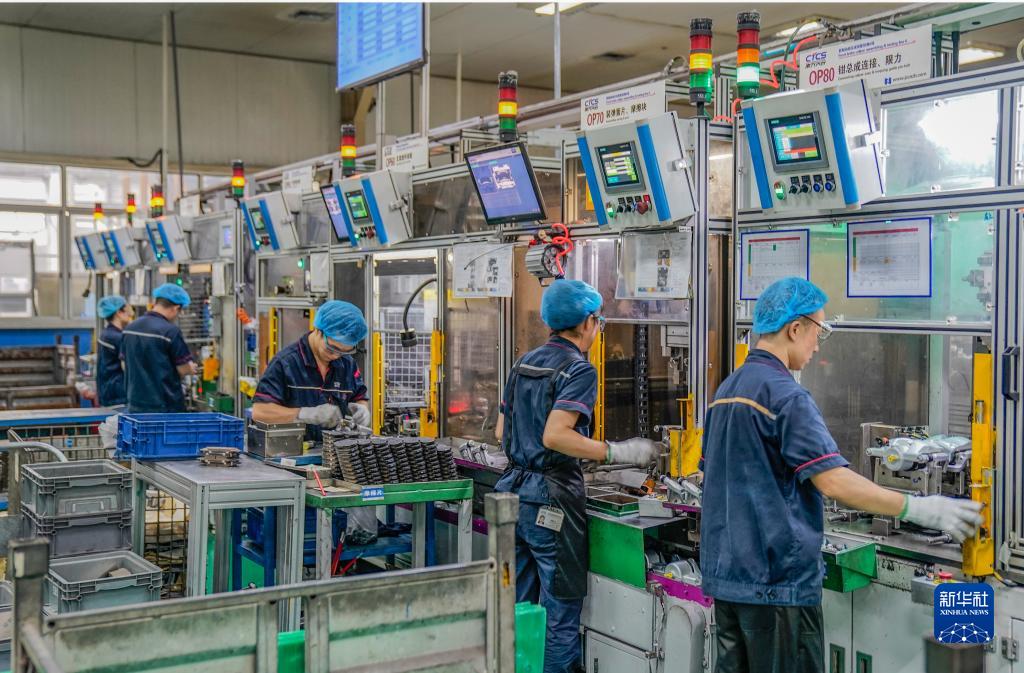 7月13日,工作人员在南方天合底盘系统有限公司车间内作业。