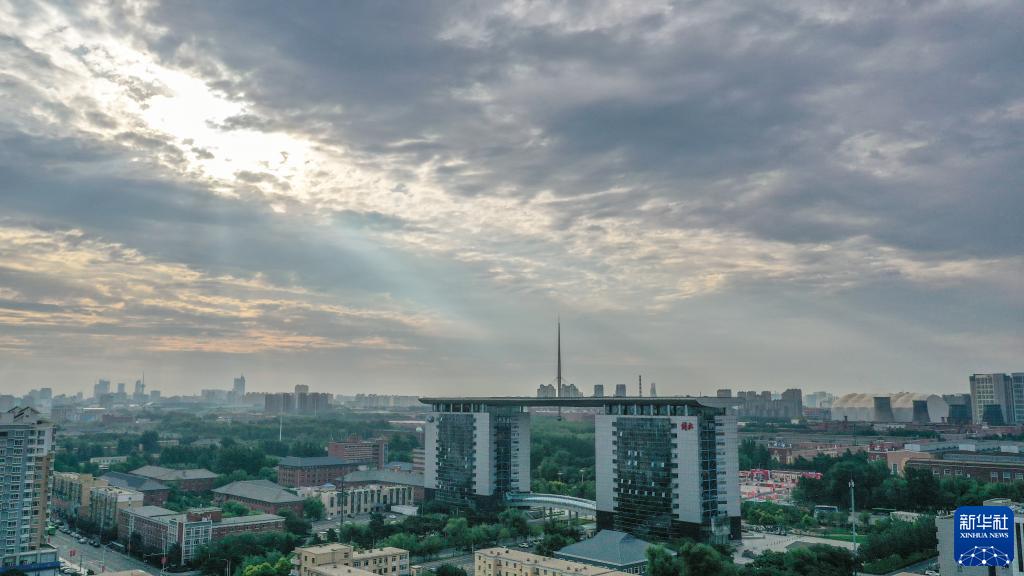 7月13日无人机拍摄的晨曦中的一汽解放总部大楼。
