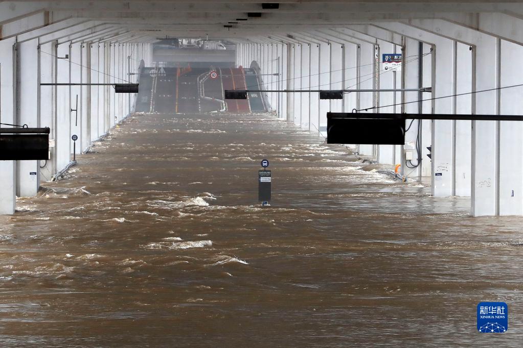 这是7月14日在韩国首尔拍摄的被水淹没的潜水桥。
