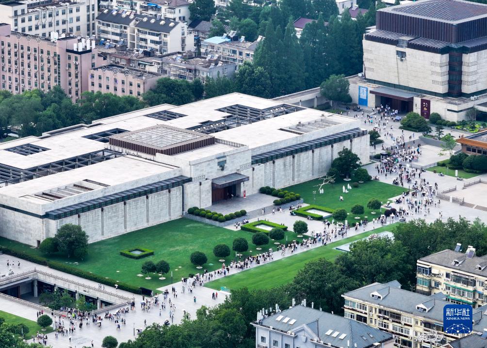 参观南京博物院的观众络绎不绝(无人机照片,6月11日摄)。