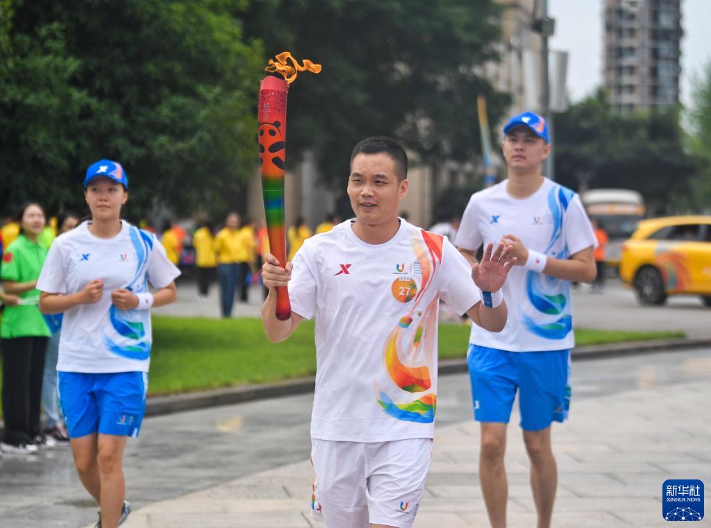新华全媒+丨成都大运会火炬在西南财经大学(柳林校区)传递