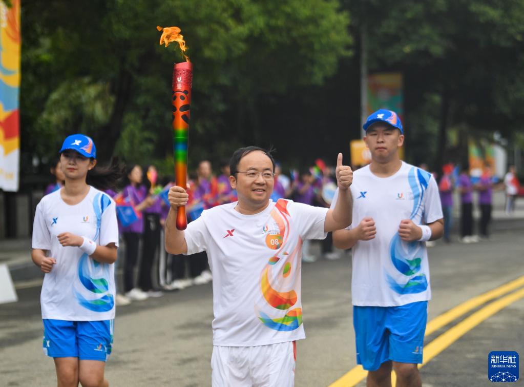 新华全媒+丨成都大运会火炬在西南财经大学(柳林校区)传递