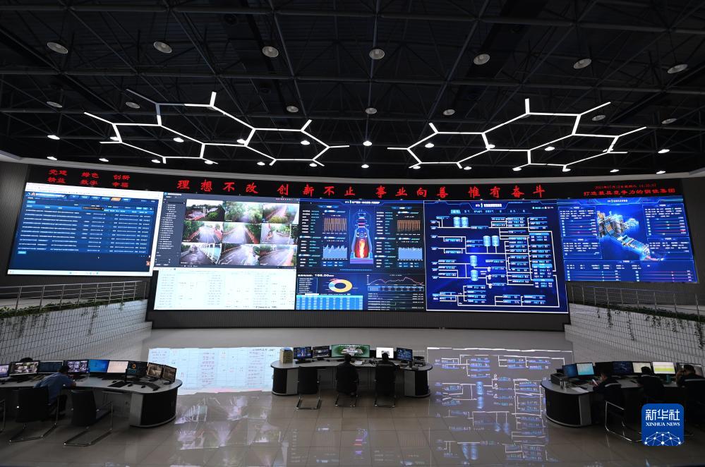 工作人员在天津市新天钢钢铁集团有限公司工业互联网运营中心值班(7月12日摄)。