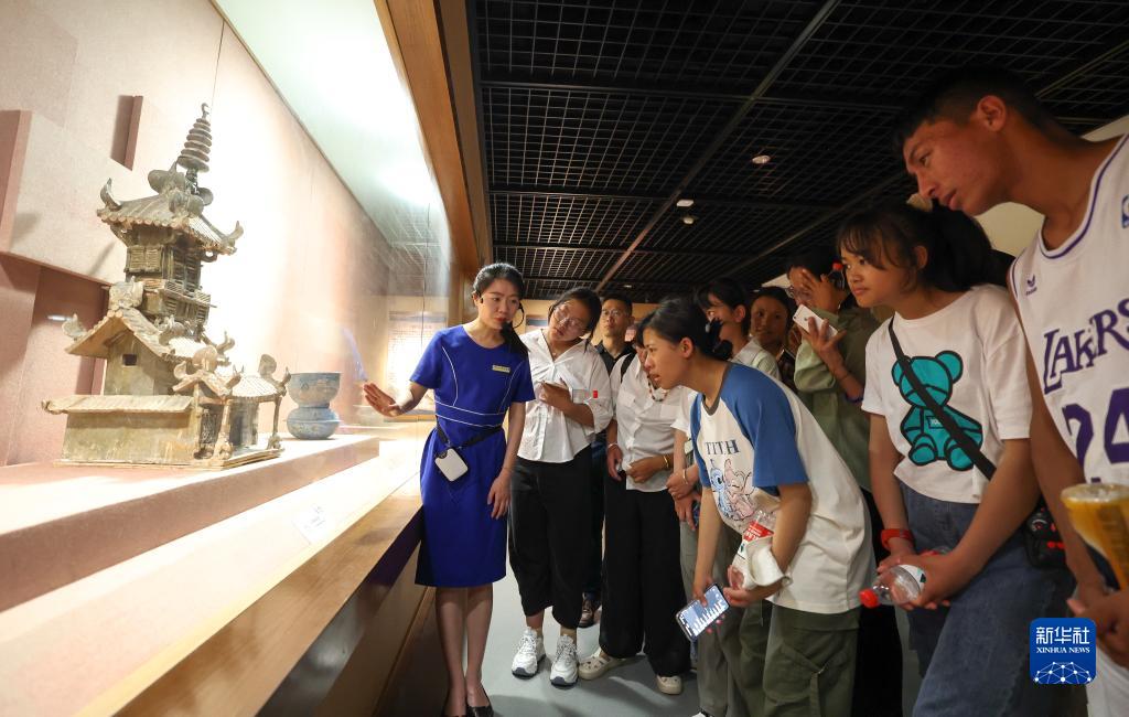 7月14日,在湖北省襄阳市博物馆,来自西藏山南市琼结县的手拉手夏令营的学生们跟随讲解员参观。