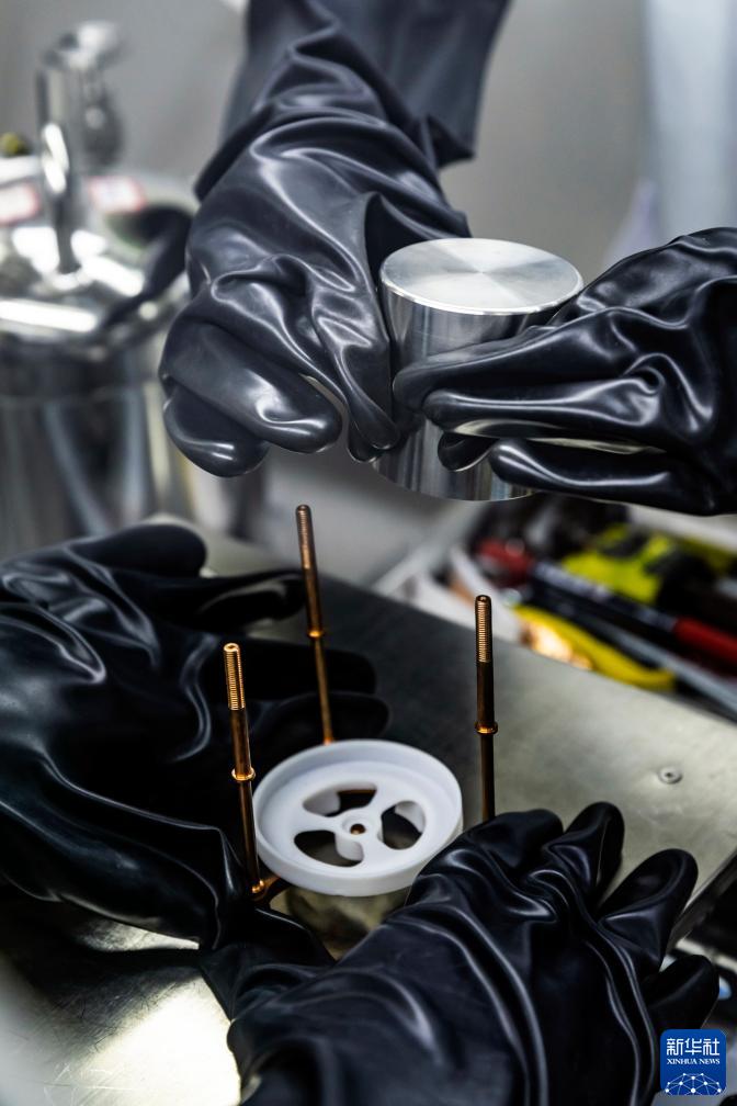 7月3日,在中国锦屏地下实验室,实验组成员利用模拟装置,训练装配1公斤级高纯锗探测器,为开展第三代百公斤级高纯锗暗物质实验做准备。新华社记者 沈伯韩 摄