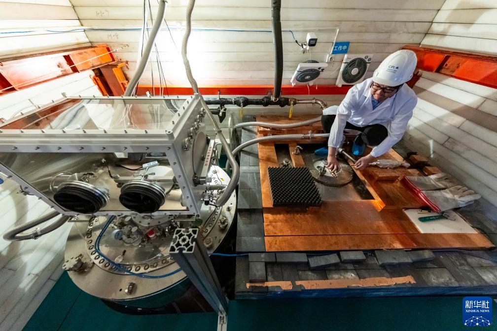 7月3日,在中国锦屏地下实验室,杨丽桃博士在检查实验装置运行情况。新华社记者 沈伯韩 摄