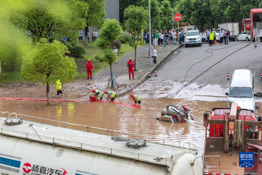 7月14日,在重庆市万州区江南新区,排水机器人在进行排水抢险作业。