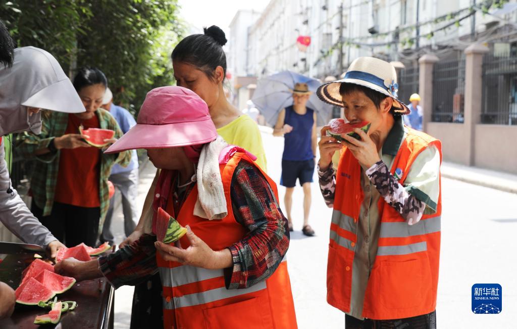 连日来,入伏后的江西南昌高温炙烤,青山湖区站东街道新时代文明实践所开展“致敬劳动者 香甜西瓜送清凉”活动,为辖区环卫工人发放绿豆和西瓜等防暑降温物品,送上一份清凉与关怀。