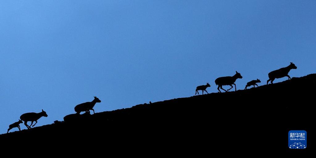 7月8日,在新疆阿尔金山国家级自然保护区兔子湖地区,藏羚羊妈妈带着幼崽迁徙。
