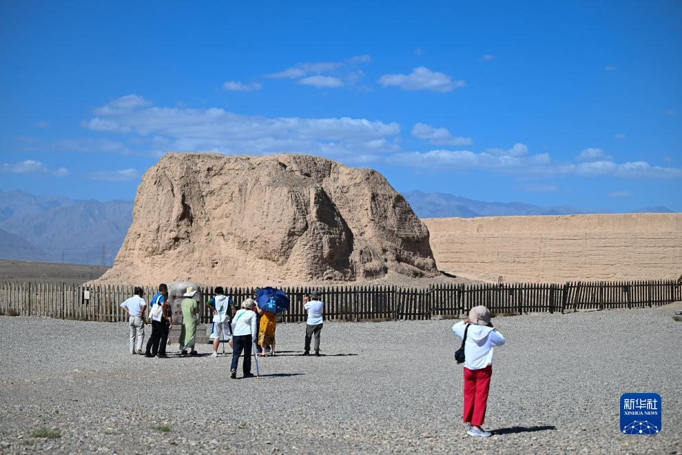 游客在甘肃省嘉峪关市参观长城第一墩(7月14日摄)。