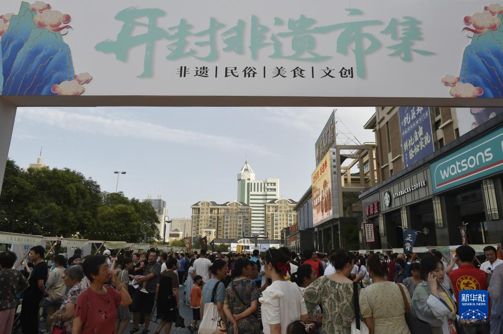 7月14日傍晚在开封市开元广场拍摄的“非遗市集”现场。