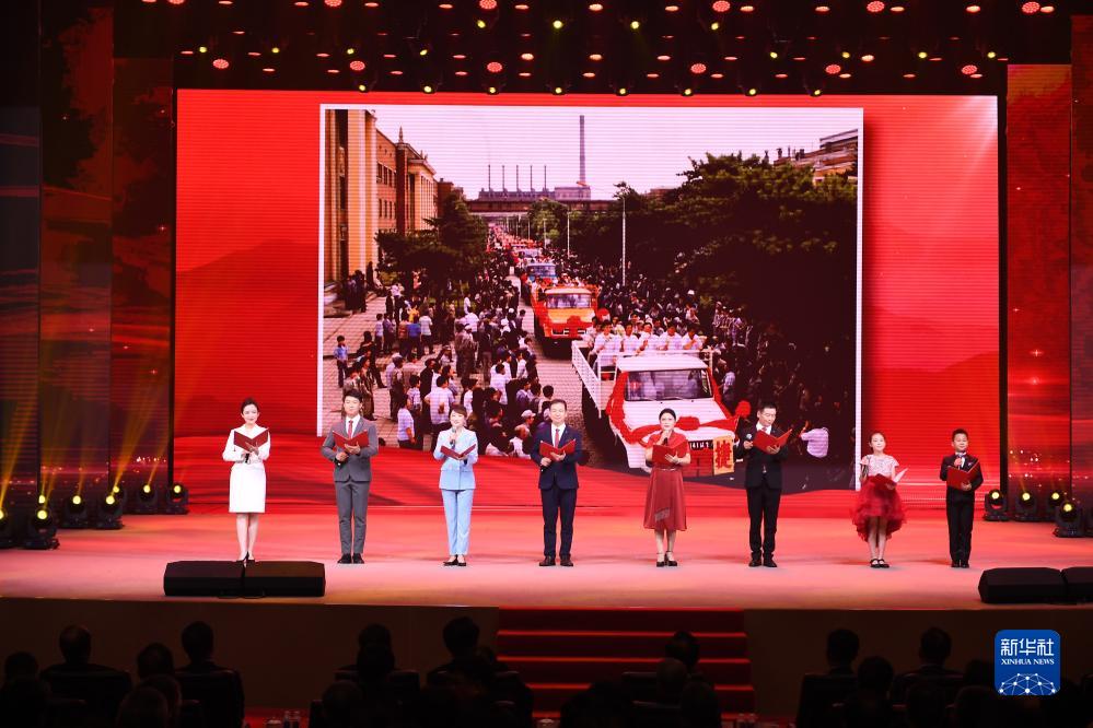 7月15日,一汽员工在中国一汽成立70周年庆祝大会上表演诗朗诵。
