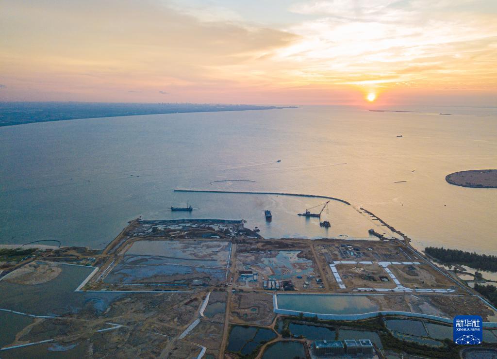 7月14日拍摄的建设中的文昌铺前中心渔港项目(无人机照片)。