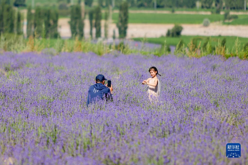 夏日时节,新疆伊犁哈萨克自治州霍城县芦草沟镇四宫村的万亩薰衣草花海渐次开放,吸引众多游客前来观赏。