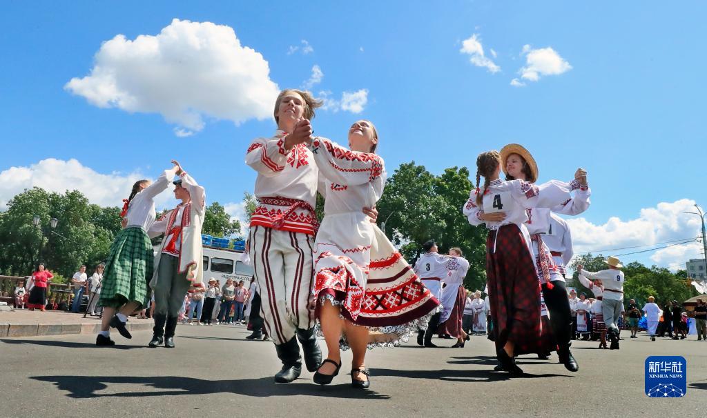 当日,一场民族舞蹈比赛在白俄罗斯维捷布斯克举行。新华社发(任科夫摄)