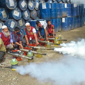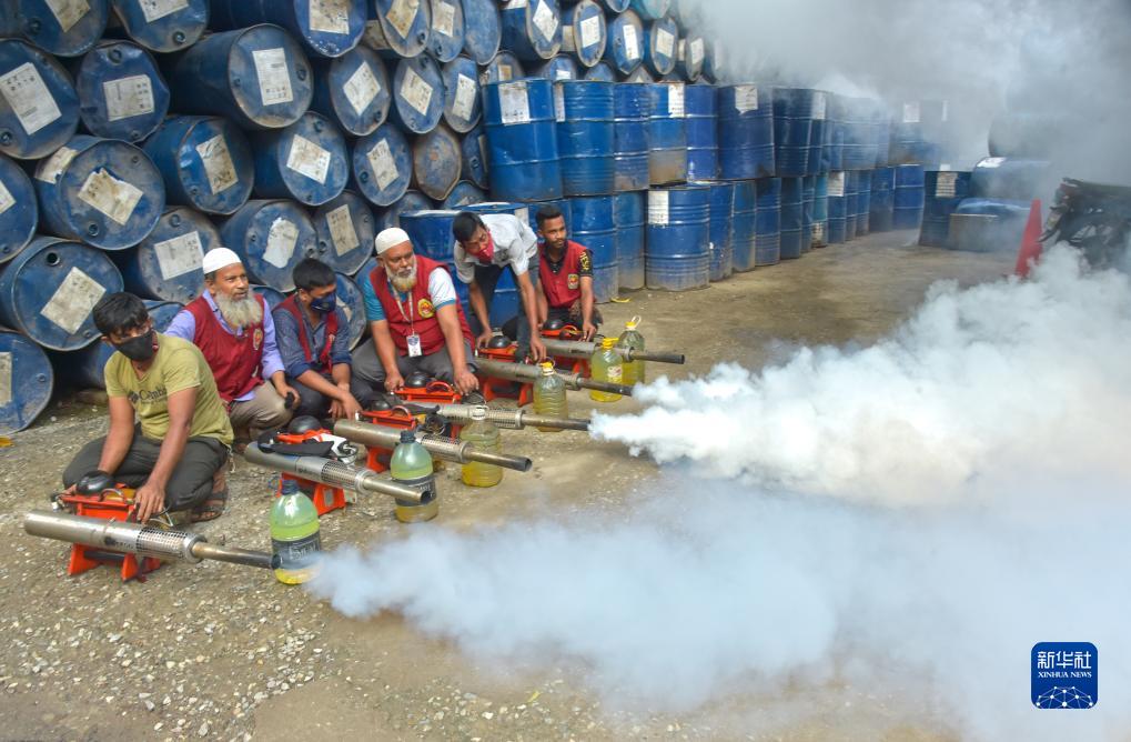 7月16日,工作人员在孟加拉国达卡进行灭蚊工作,以预防登革热。