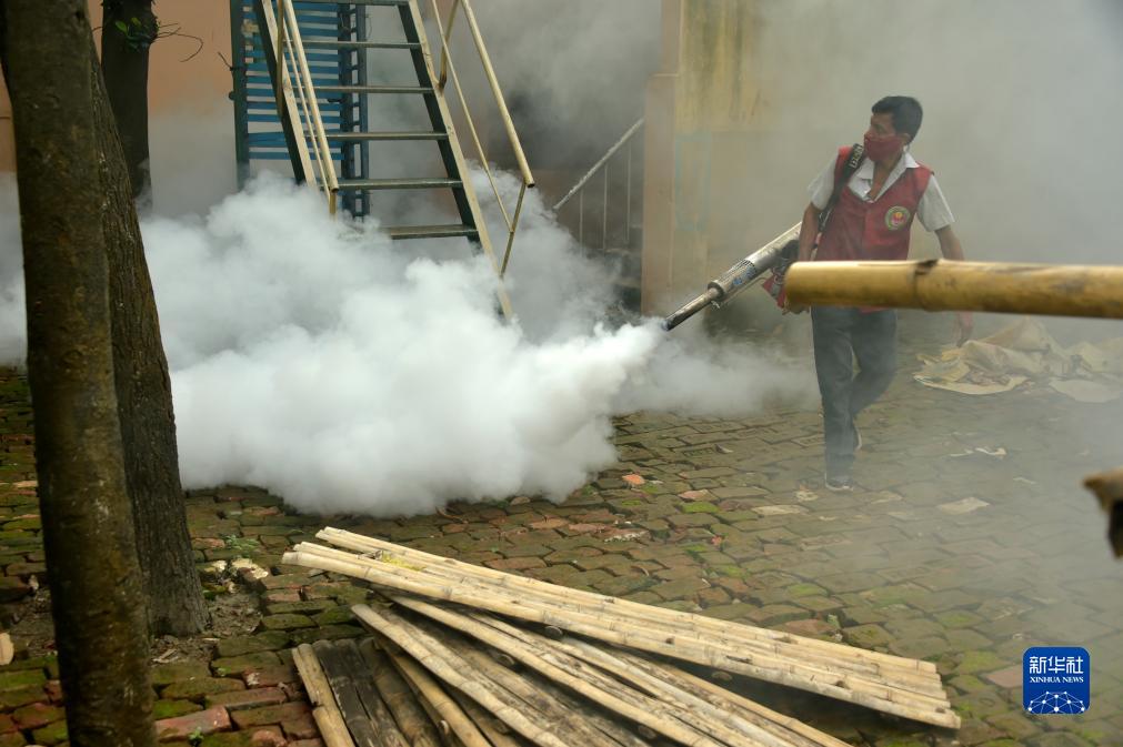 7月16日,工作人员在孟加拉国达卡进行灭蚊工作,以预防登革热。