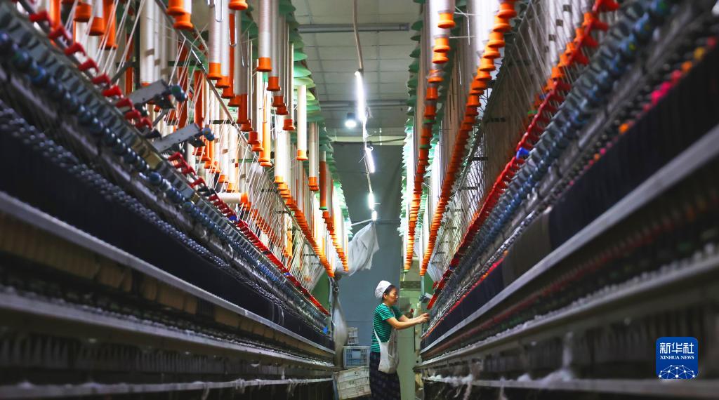 7月17日,在江苏省连云港市海州区一家纺织企业,工人在生产线上忙碌。