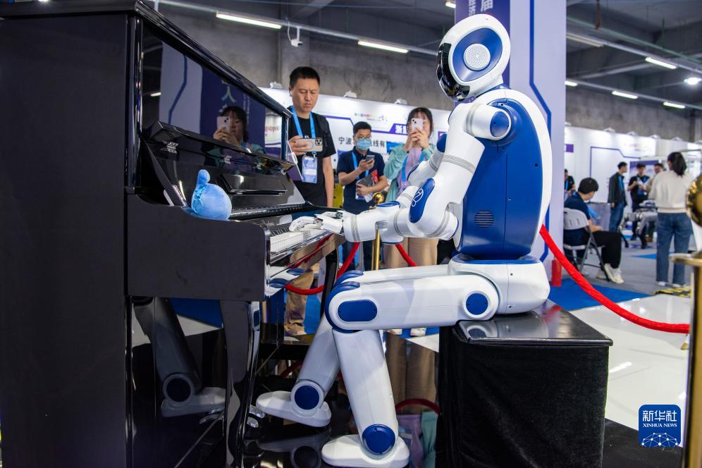 客商在浙江省余姚市举办的第八届中国机器人峰会上欣赏机器人弹钢琴(5月24日摄)。