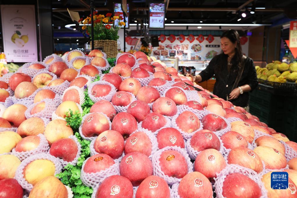 消费者在贵州省岑巩县一家超市内选购水果(6月9日摄)。