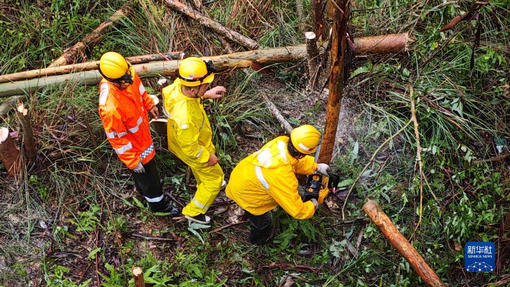 7月18日,国铁南宁局沿海铁路公司职工在西部陆海新通道铁路沿线处理危竹危树。当日,国铁南宁局沿海铁路公司组织职工利用轨道车,在风雨中对西部陆海新通道铁路沿线进行巡检,对线路和防洪重点处所进行全面巡查,及时处理危竹危树、接触网设备隐患等问题,全力确保铁路运行安全。