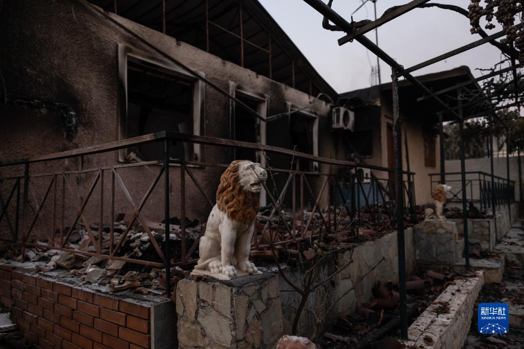 这是7月17日在希腊雅典郊外卢特拉基附近拍摄的被烧毁的房屋。