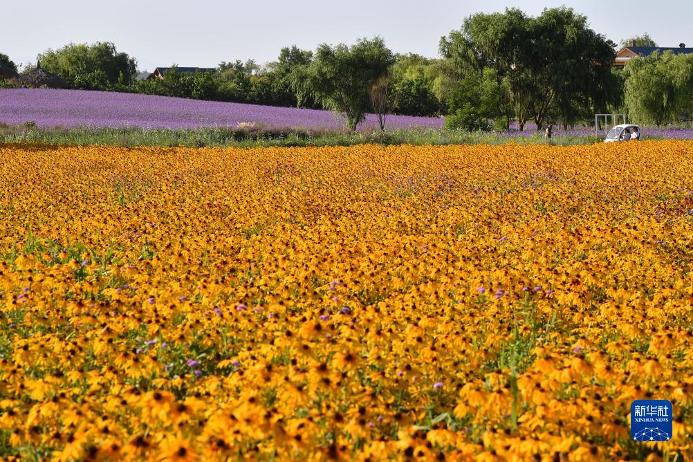 宁夏薰衣草庄园盛开的九叶菊(7月15日摄)。
