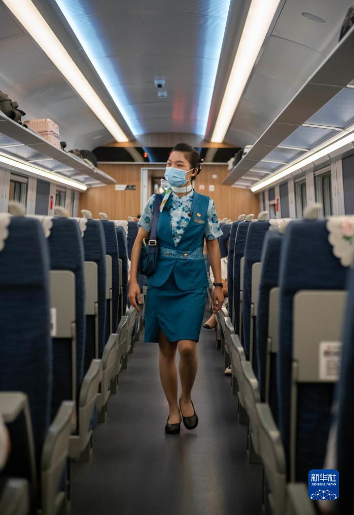 依波逢在D887次列车车厢内巡查(7月16日摄)。