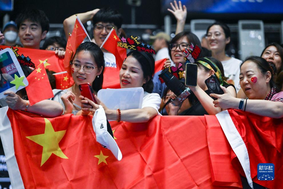 7月19日,观众为中国选手加油助威。