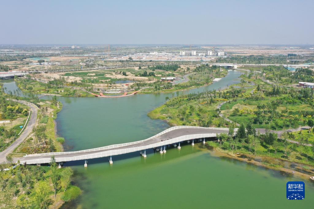河北雄安新区启动区中央绿谷及东部溪谷生态廊道一角(7月18日摄,无人机照片)。