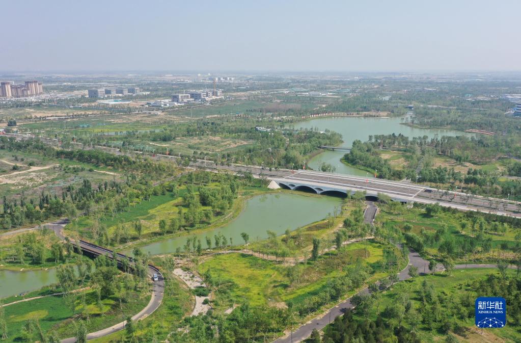 河北雄安新区启动区中央绿谷及东部溪谷生态廊道一角(7月18日摄,无人机照片)。