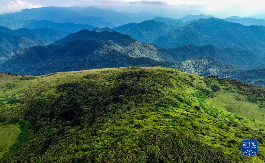 这是7月19日在陕西省汉中市留坝县拍摄的紫柏山景区草甸景色(无人机照片)。