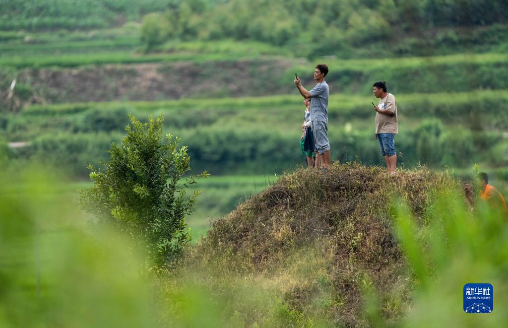 7月19日,人们在云南省普洱市江城县的一处农田旁观看亚洲象。
