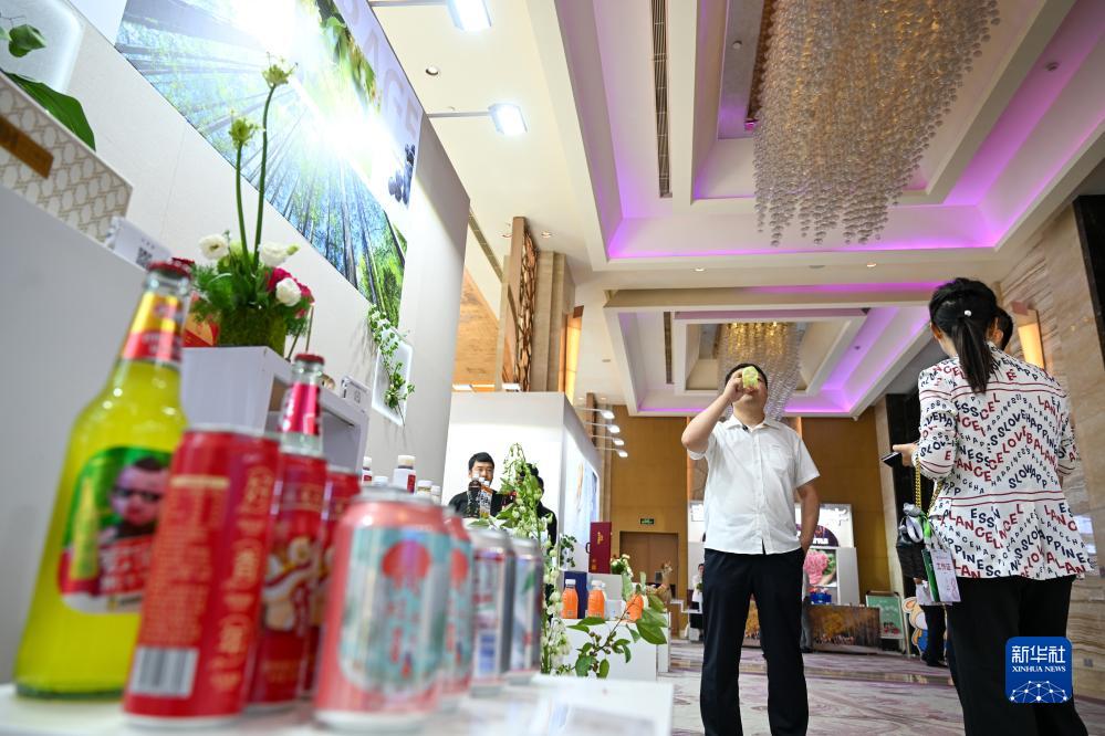 7月20日,参会嘉宾在第八届全球吉商大会上体验吉林特色商品。