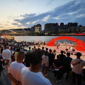 7月19日,在兰州市城关区,游客在黄河岸边欣赏黄河之滨百日千场音乐展演活动。