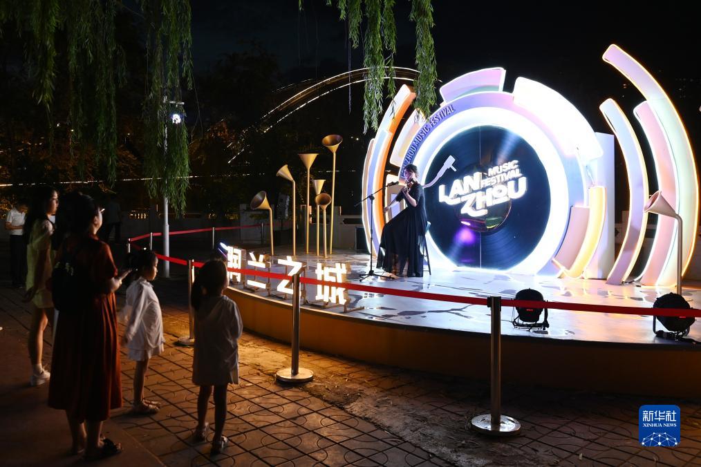 7月19日,在兰州市城关区,游客在黄河岸边欣赏黄河之滨百日千场音乐展演活动。