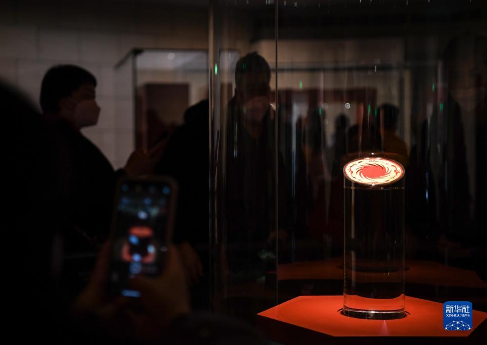 观众在位于四川成都的金沙遗址博物馆参观太阳神鸟金饰(1月24日摄)。
