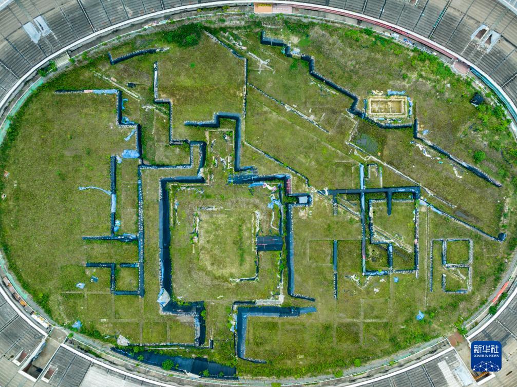 7月20日拍摄的位于成都体育中心内的东华门遗址公园内场遗址区(无人机照片)。
