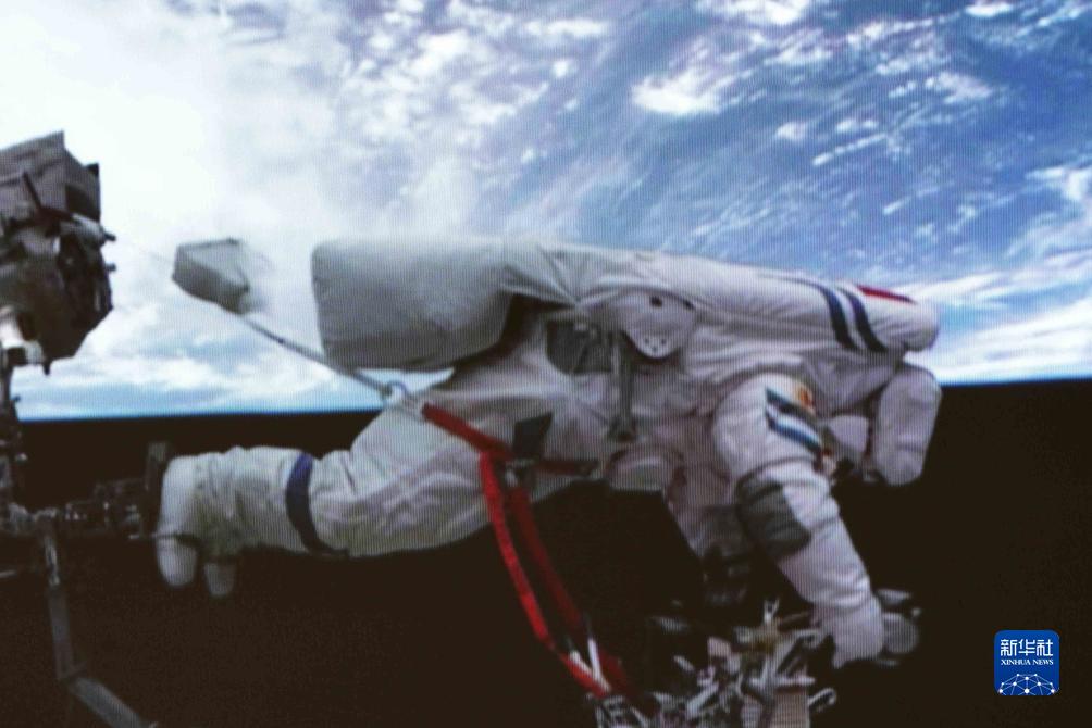这是在北京航天飞行控制中心拍摄的神舟十六号航天员景海鹏开展舱外操作的画面(7月20日摄)。
