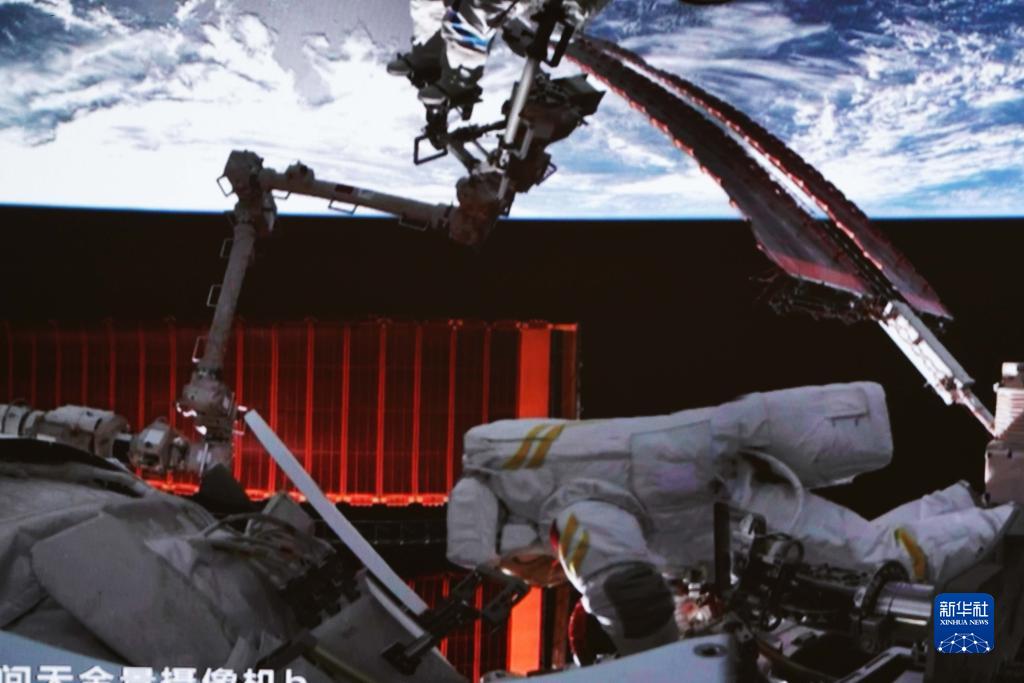 这是在北京航天飞行控制中心拍摄的神舟十六号航天员朱杨柱开展舱外操作的画面(7月20日摄)。