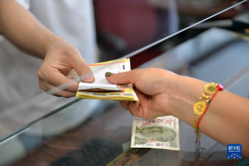 7月20日,一名顾客在土耳其安卡拉一个货币兑换点换钱。