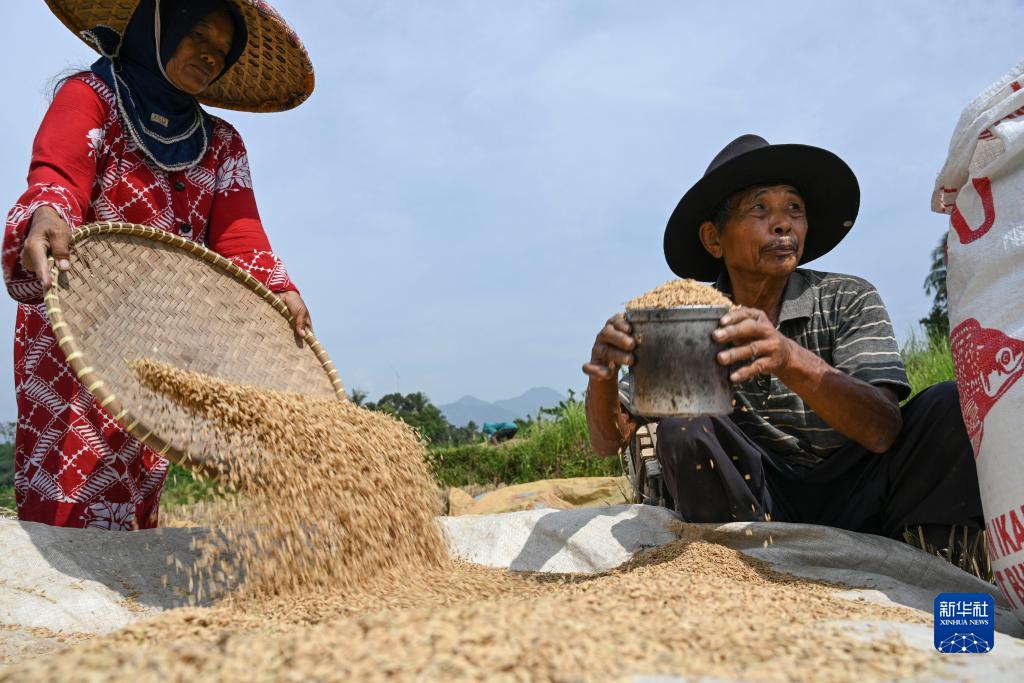 7月20日,农民在印度尼西亚西爪哇省茂物地区的乡间收获稻米。