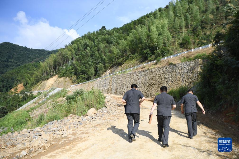 7月19日,安化县人民法院干警行走在库区沿岸的柘溪镇广益社区。