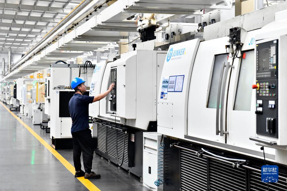 7月21日,在位于威海市文登区的天润工业技术股份有限公司,工人在曲轴自动化生产线值守。