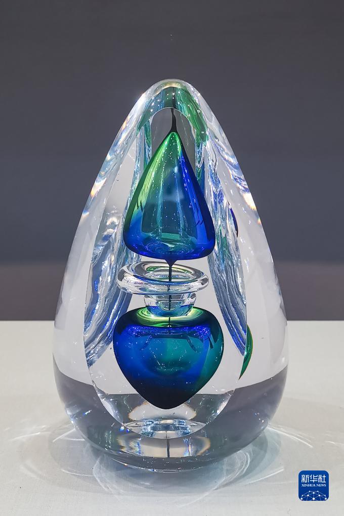 这是法国蒙彼利埃市赠送给成都市的玻璃艺术品(7月15日摄)。