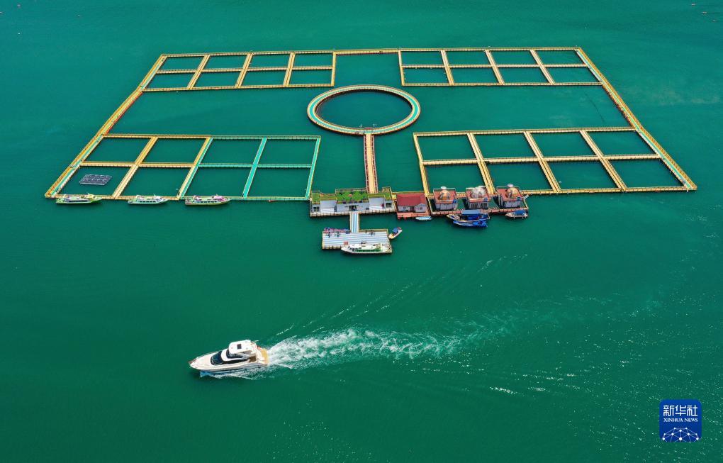 电动游艇载着游客领略宁德海上风光(无人机照片,7月14日摄)。