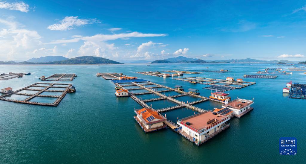 宁德三都澳白基湾海域的新型大黄鱼养殖渔排(无人机照片,7月17日摄)。